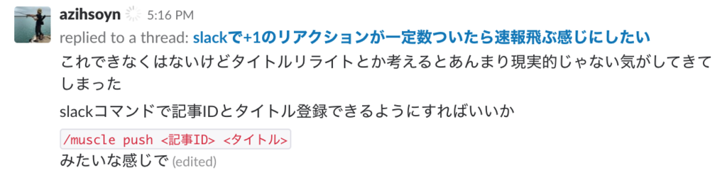サービスのプッシュ運用する上では割と致命的なため、このシステムで行くのはやめて普通に管理画面作るか、、、と諦めていたのですが、slackコマンドで登録する方法を思いつきました。