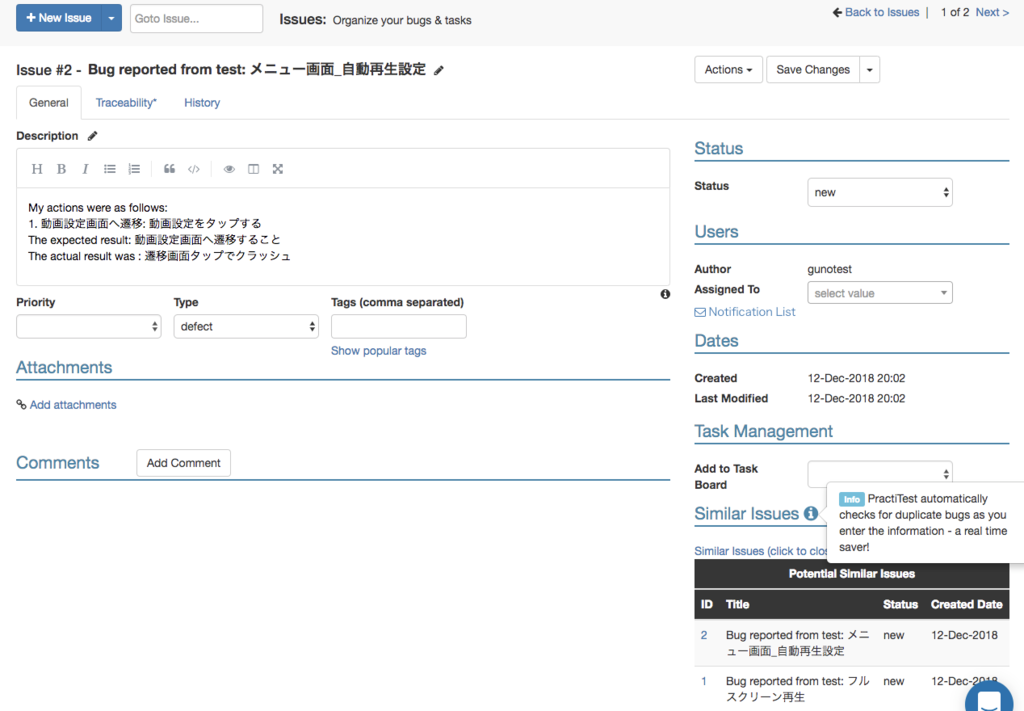 ただ、数十分さわっただけで不具合を2つも見つけてしまったので、却下。 (テスト管理ツールなのでここは厳しくいかせてもらいます) - Kualitee