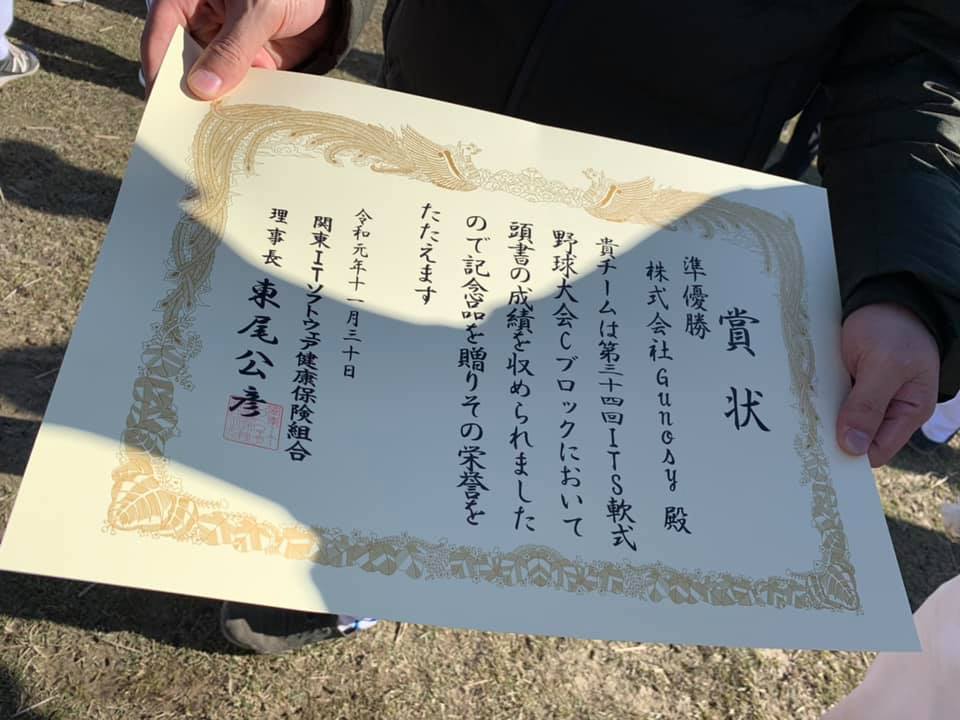 かとうです。Gunosy野球部は昨日、関東IT健保の野球大会のCブロックにて、準優勝いたしました!優勝まであと一歩でしたね。
