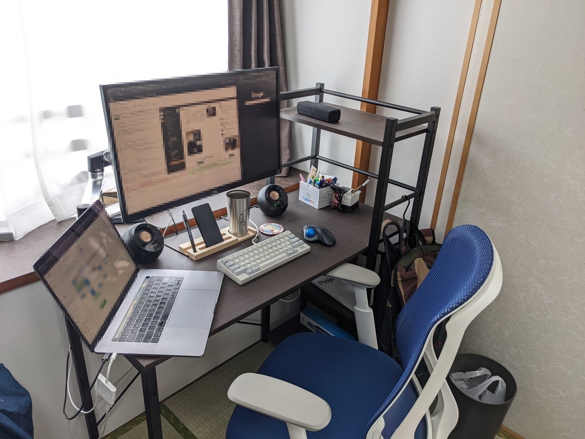 去年、椅子だけ残念と紹介された私の在宅環境です。